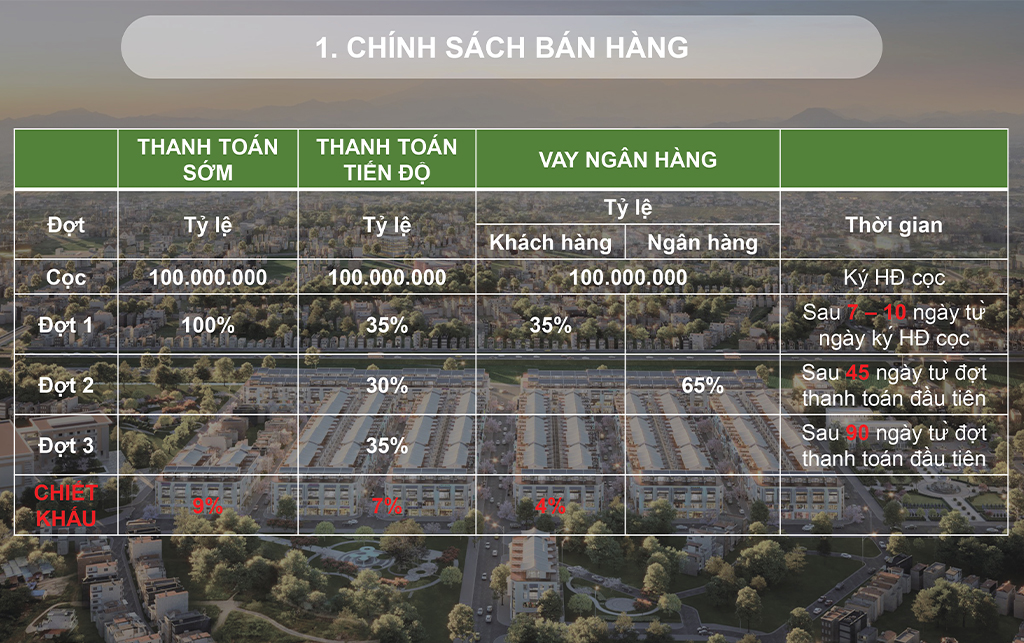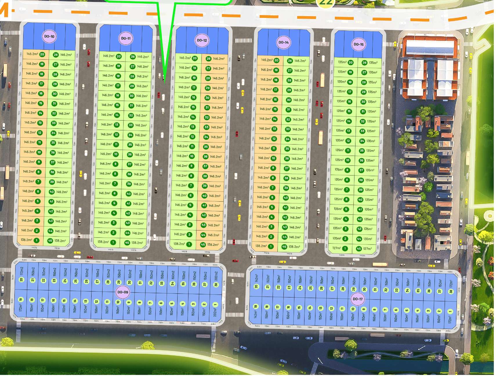 Loại hình: 2 tòa chung cư với 1400 căn hộ và 544 lô đất nền liền kề, shophouse